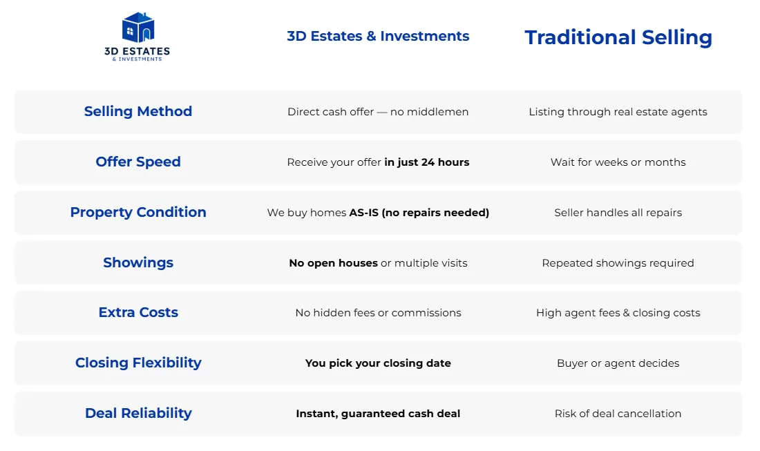 At 3D Estates & Investments, we make selling your home quick, transparent, and hassle-free.